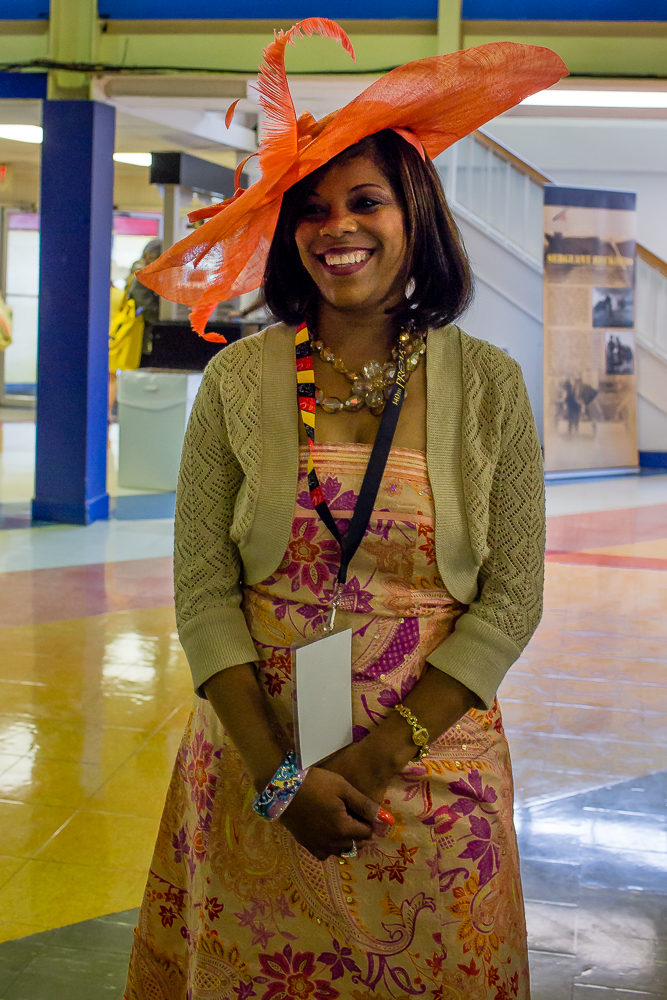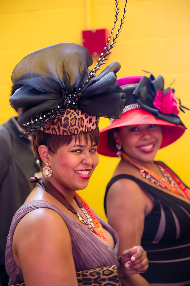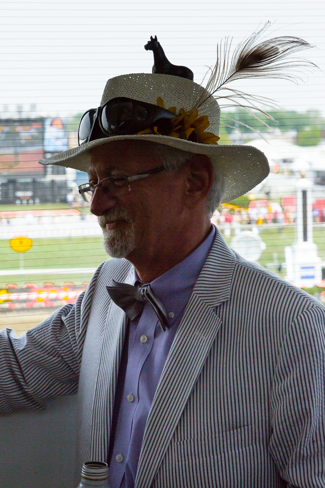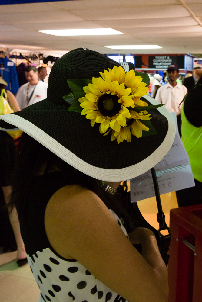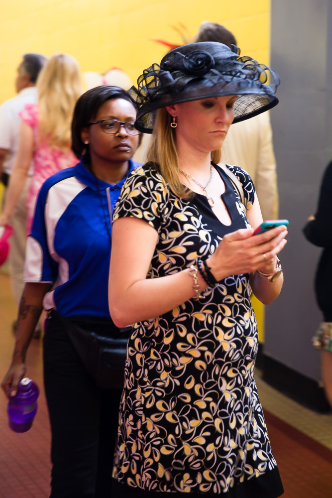 Last Christmas my daughter Sherri Lynne gave to me two tickets to this years’ running of the Preakness and Black Eyed Susan Stakes. The Friday tickets were for the running of the Black Eyed Susan and on Saturday’s for the 140th running of the Preakness Stakes won by American Pharoah. That win made him eligible for a triple crown victory as he heads to the Belmont Stakes on June 6th. The following images were taken on Friday and Saturday as I thought I would try to capture the excitement of the crowd as the featured race drew near. After taking a few images I became aware that this event was turning into one hugh party and a very nice one at that. First and foremost there was the racing the initial attraction but then I saw people selling lemonade for various charities, locale organizations setting up “bar” and serving various mixed drinks raising money for their cause. Then came “Preakness Day.” I found myself drinking Mimosa’s before 9:30am and being fully aware of their effect. The whole atmosphere was that of excitement and fun. I realized that for some this was all about horse racing, for others it was about raising dollars to support their organization, for the track it was about earning enough money in two days to keep it viable for the next year and finally, came the most important realization, ” it was all about hats”. Small, large ones, feathery, vibrant colored, sophisticated and showy “hats”. I went about trying to capture various species of these ornaments for the “tete” while still keeping my focus on my passion for horse racing. Here are some of those results. Hope you enjoy the images as much as I had fun taking them.