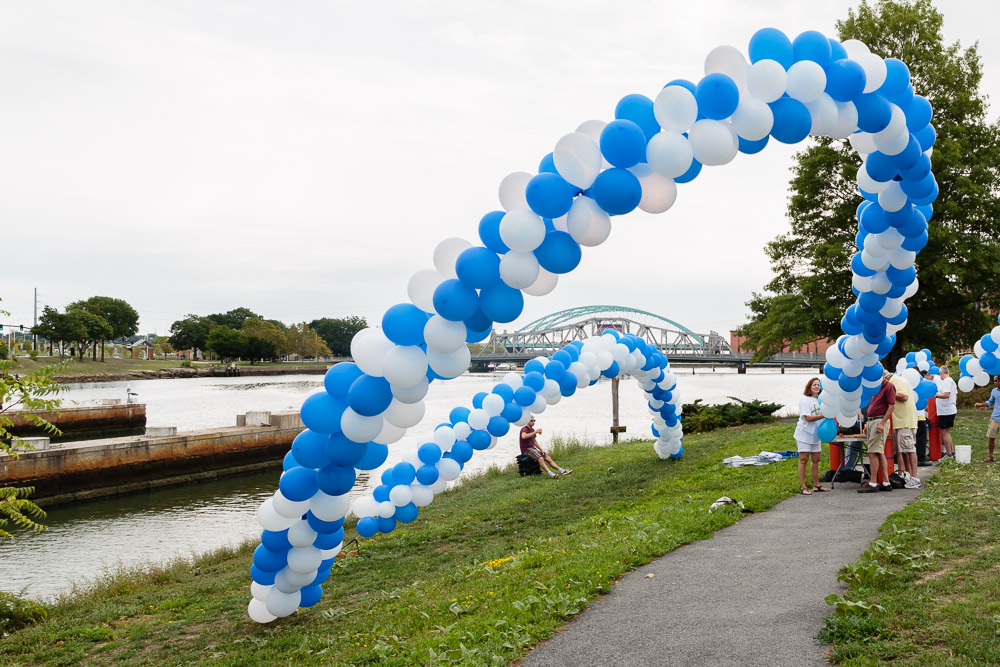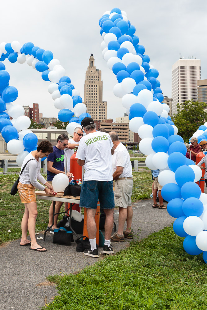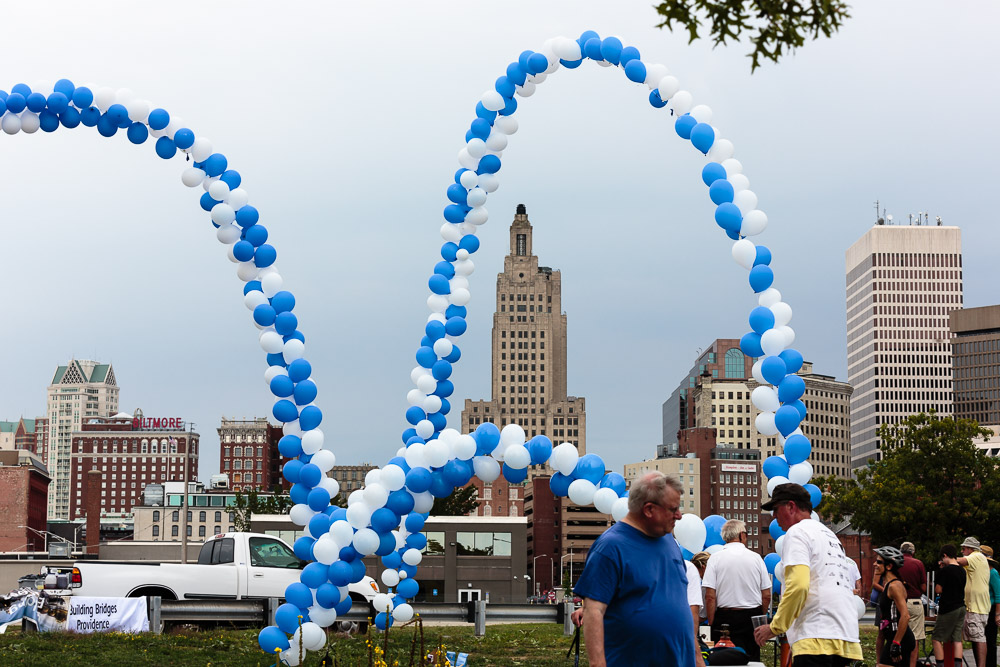 The Building Bridges website describes the organization as a non-profit project founded by a group of concerned citizens to advocate for the construction of Providence’s long-planned and long-delayed public Riverside Park and pedestrian bridge on the former I-195 land. The group organized an event to raise awareness and to give rise to the “imagined bridge.” The stand-in for the finished bridge was one made of balloons, representing what the proposed bridge would look like when completed.