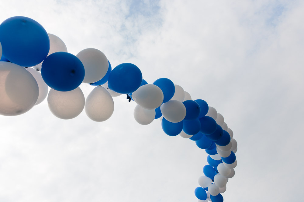 After taking a short break, they cleaned up the area, put away the tables, helium tanks and other items. Now it was time to set up a microphone for the dedication of this bridge. The event turned out to be timely as the formal contract for the pedestrian bridge was awarded just two days prior. The symbolism of this event, and the fluttering balloon bridges are now directly linked to the actual undertaking of this project. “Awesome”.