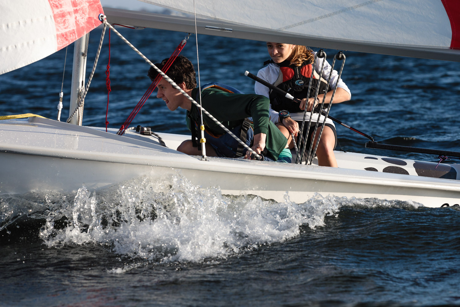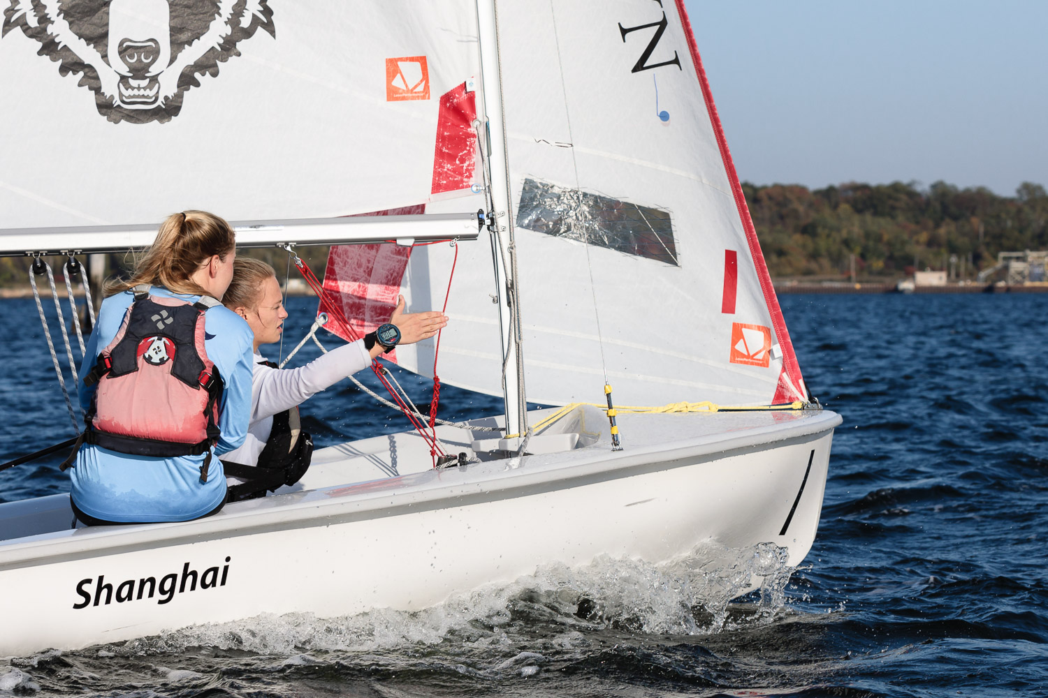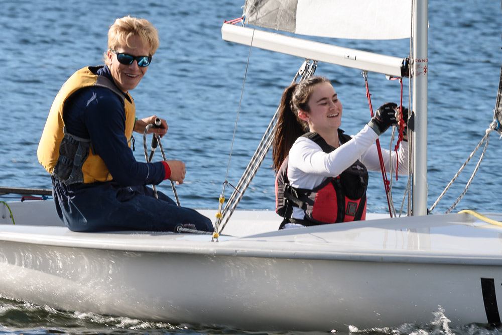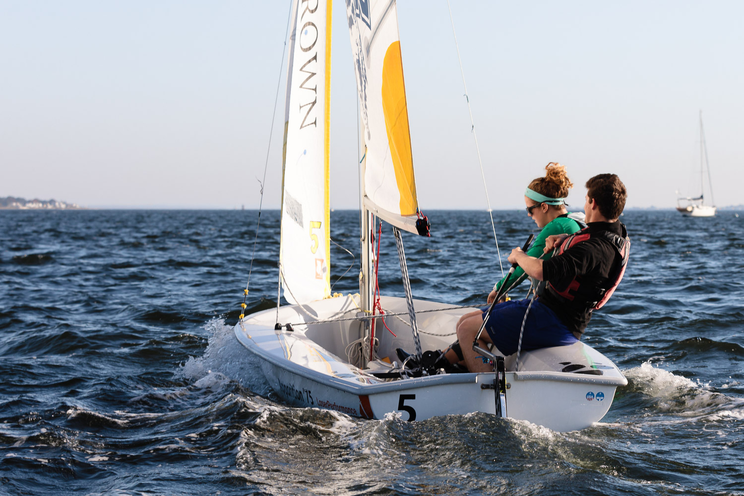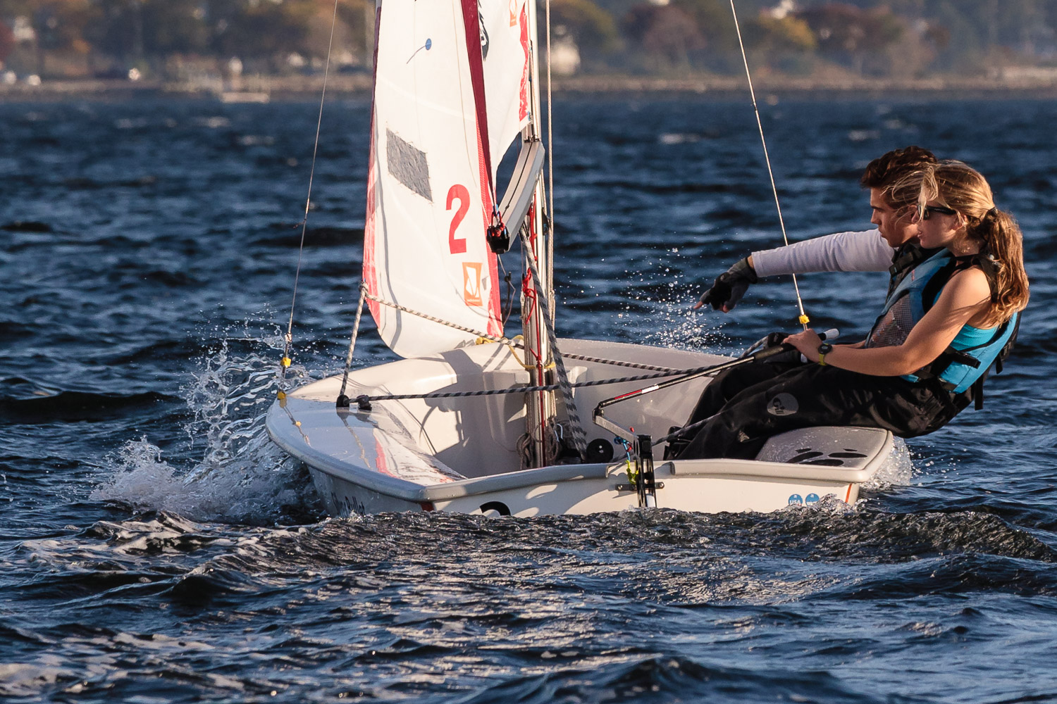 I walk my neighborhood 2-3 times a week. Usually a fixed route down Post Road to Pawtuxet Village crossing the bridge on Broad Street passing Rhodes continuing on to Albert Street where I head towards Narragansett Boulevard. Turning right on the Boulevard I am making my way back home. All in all a three mile walk. As I was passing the Edgewood Yacht club I paused for a “look through” finding the foundation pilings for the new yacht club in place while workers were welding supports in place from piling to piling. This time of year the club was pretty secluded as workers were removing and securing equipment for the winter soon to follow. Suddenly there was a flurry of activity as young men and women walked the floating docks towards some sailboats, the kind you see frequently in groups on and around the bay. Off came the protective canvas covers and quickly the sails rose as boat by boat was pushed into the water sailing off to mid bay. As usual, I do not take my walk without having my camera at my side. Taking advantage of this happenstance I snapped several images of the unfurling and sailing off of many a skiff. Conversing with the sailors I learned they were all from Brown University and were part of Brown’s sailing team. The team sails each Tuesday through Friday at approximately 3pm so I planned to be there the next day to take photographs. I thought, wouldn’t it be cool to be out on the bay taking images imagining wind blown sails, boats leaning, water splashing. I inquired as to who the coach was and soon was in conversation with John Molllicone, Browns’ coach and as I was told a “world class sailor”. Without hesitation I was given permission to get in an inflatable to photograph the regatta. The following Tuesday, on a sunny and warm day, I found myself out on the bay having one enjoyable afternoon. Below are some of the images taken that afternoon.