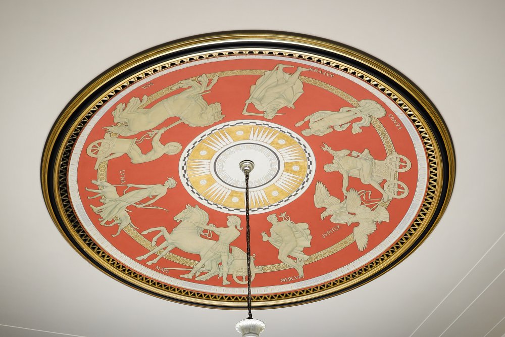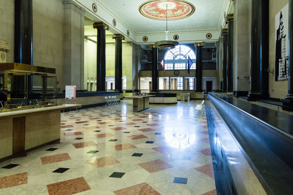 The tour ended as we climbed one level of stairs and emerged back at the grand banking area where we all parted. I thanked Barbara then took some additional images before leaving with a feeling of appreciation for the building itself. Note: the ceiling medallion picuted is one of three. The medallion shown depicts the planets. Lastly the last image of the desk calendar shows the last date the bank was open in 2013. If given the future opportunity I would urge you to take this tour if possible. More information available at SAVE SUPERMAN RI.