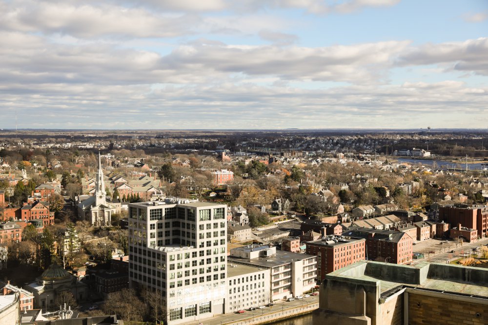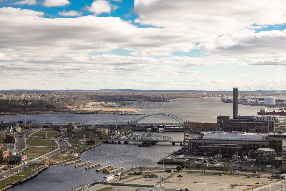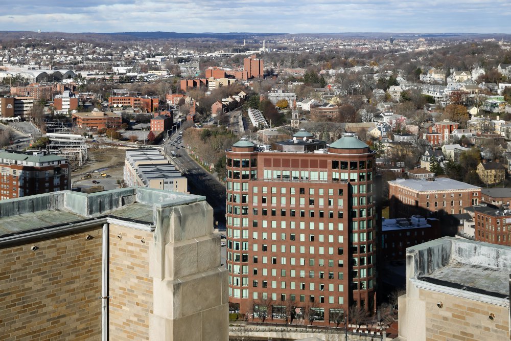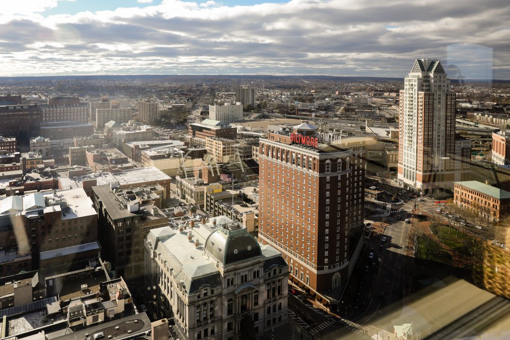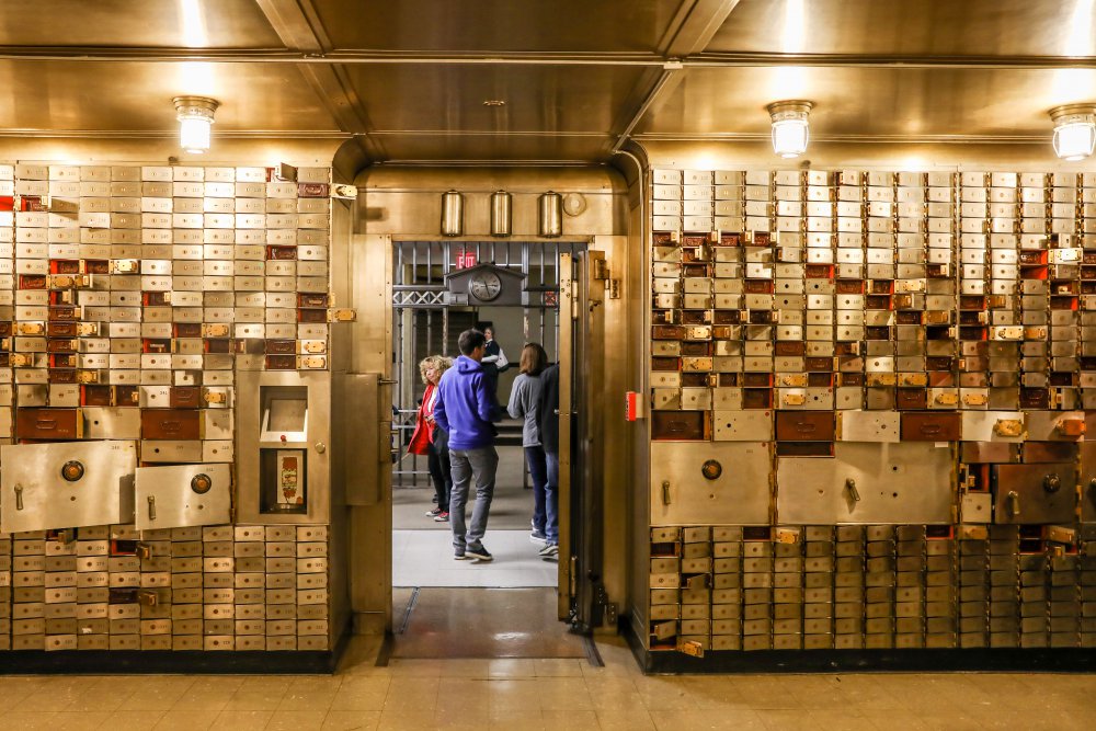 The tour started in the grand bank area. Marble decorative floors and ceilings, granite and cement columns along with a immense polished granite barrier between where people would do their banking with bank tellers. The tour guide, as I remember, stated there would be 28 tellers in place to serve the banking public. From the grand bank area we then went outside where Barbara, our tour guide, provided an historical perspective on the building and what it represented to the business climate of Rhode Island. From there we went back inside getting on an elevator that took us to the 25th floor. The 25th floor turned out to be a large room with broad extensive wide windows that enabled views of Providence in all directions. A few years back I was a volunteer photographer for Waterfire where at one time Barnaby Evans, creator and Artistic Director of Waterfire Providence, arranged for photographers to access the rooftop of the Industrial National Building, directly adjacent to the Superman building. Not since then have I experienced the vast view of Providence as Superman himself would have seen the landscape today. Our group was not allowed access any level higher than the 25th floor. From here we took the elevator to the bottom of the building to the vault area. It was a much smaller space than I imagined yet very grand with what looked like steel vault doors with its thinkness measured in feet. The hinges holding the door was similarly impressive. Once inside the vault you were greated by rows and rows of safety deposit boxes all made of brass or bronze. The lower boxes were not boxes at all rather small safes with their own combination and key. On an aside when we were entering the vault itself Barbara said if anyone found a safe deposit key it was theirs to keep, adding that she did not believe any more were left. That said one of our group members found a key, now a “keepsake”.