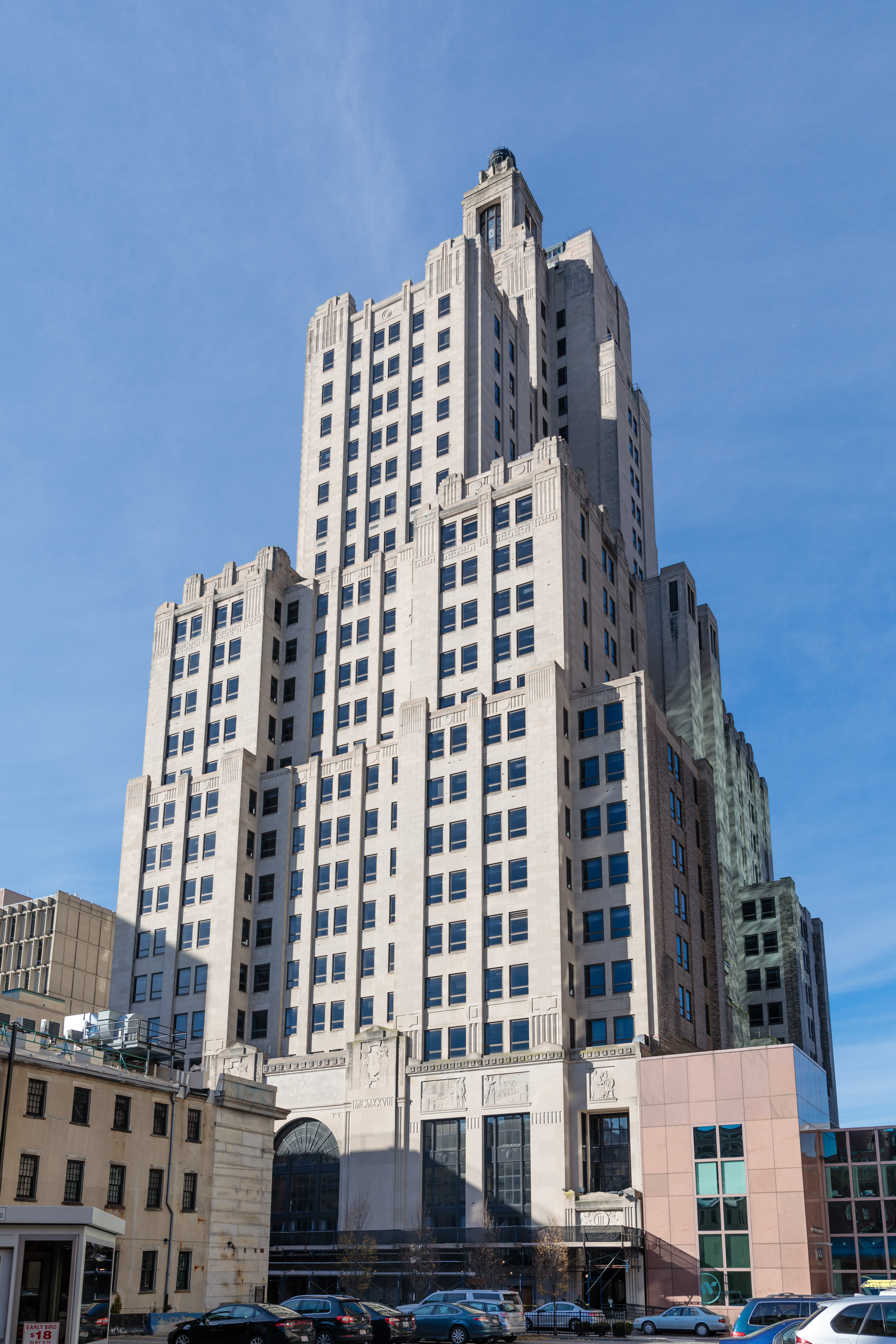The Industrial Trust building was built in 1928. Its style is Art Deco designed by a New York architectual firm of Walker and Gillette. It is a steel and concrete based structure. The building was at the time and remains the tallest building in Providence. It has 26 floors not counting the steel dome and its base.