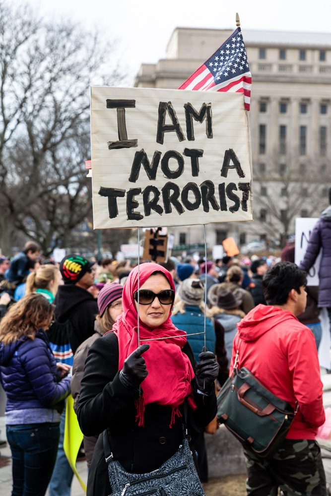 I became aware of the protest early this morning while watching the news on WRPI TV. I got my camera gear ready showing up at the Statehouse around 11:30 whereas the protest itself was scheduled for 1pm. Not a soul was present when I arrived, so I parked my car and waited. At noon still no-one; and finally around 12:30 a smattering of people began to arrive. People from Resist Hate RI said they expected somewhere around 1000 people to assemble as the event was put together quickly. By 1pm it was getting pretty crowded and by 1:30 a sizeable crowd was at hand.