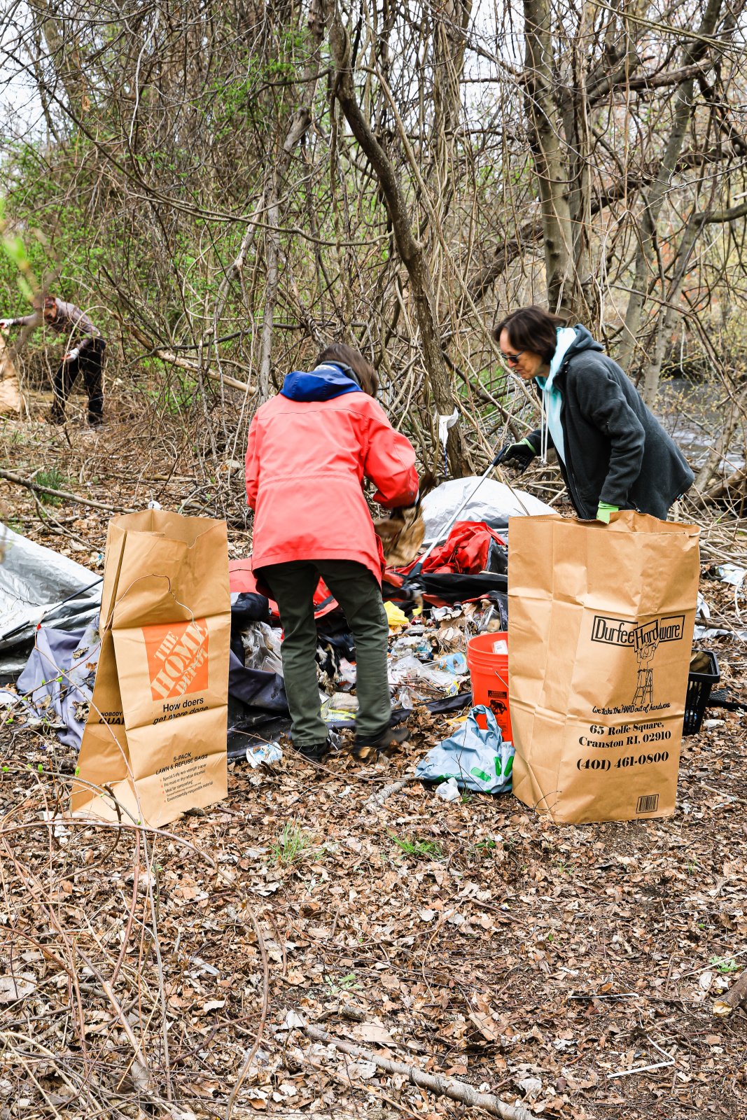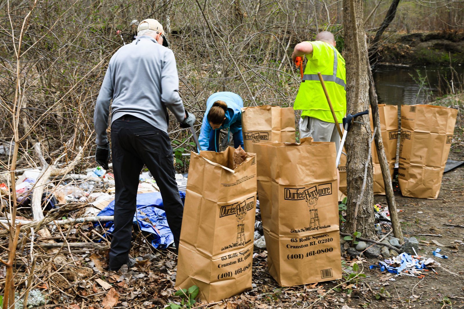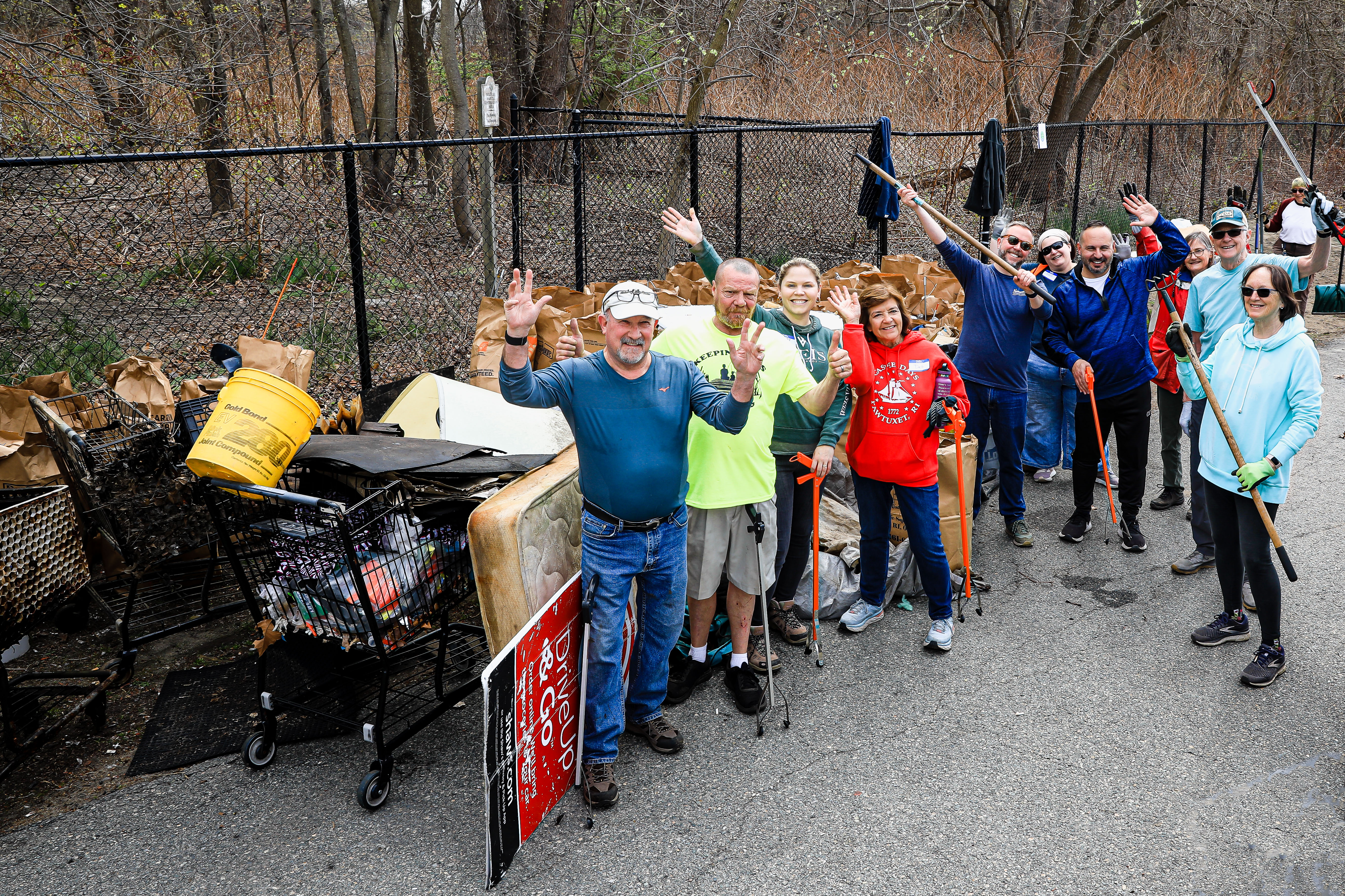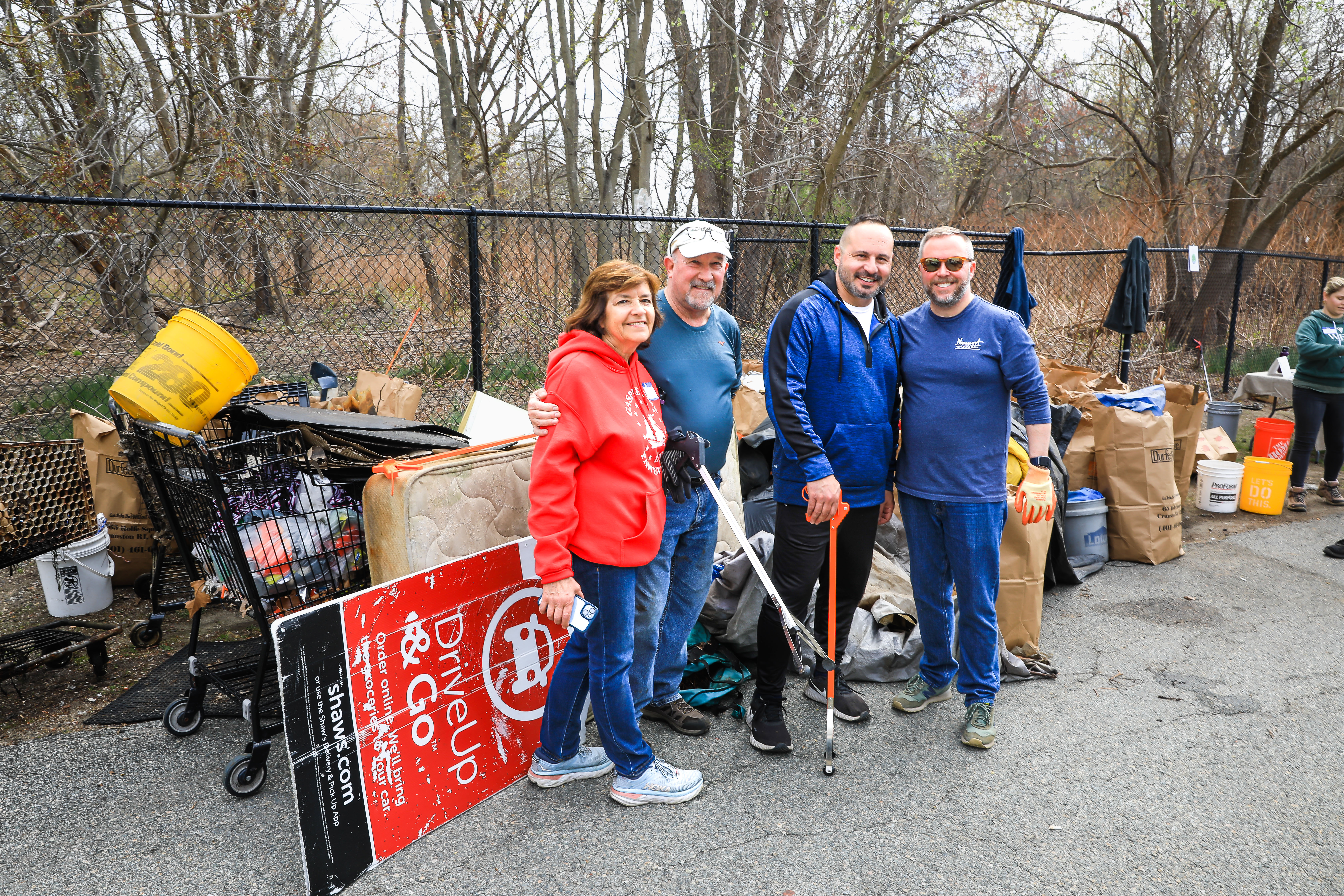On Saturday, April 15th the Pawtuxet Green Revival (PGR) and the Friends of the Pawtuxet held a river clean-up event surrounding the area abutting Shaw’s Supermarket and the Pawtuxet River. Discarded mattresses, a couch, and syringes were gathered and disposed of as well as an enormous amount of plastic containers, and paper. Old shopping carriages were removed from the river as well. When it was over the “crew”, made up of local men, women, and children, completely filled a huge industrial size dumpster, pitcher enclosed. When traveling by Shaw’s Market, take notice of the area free of debris.