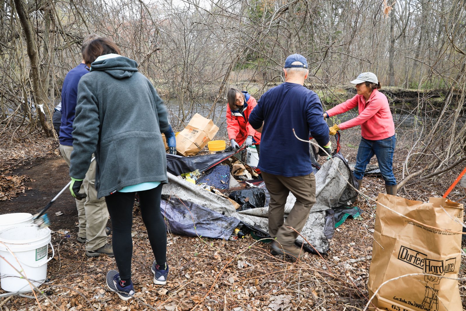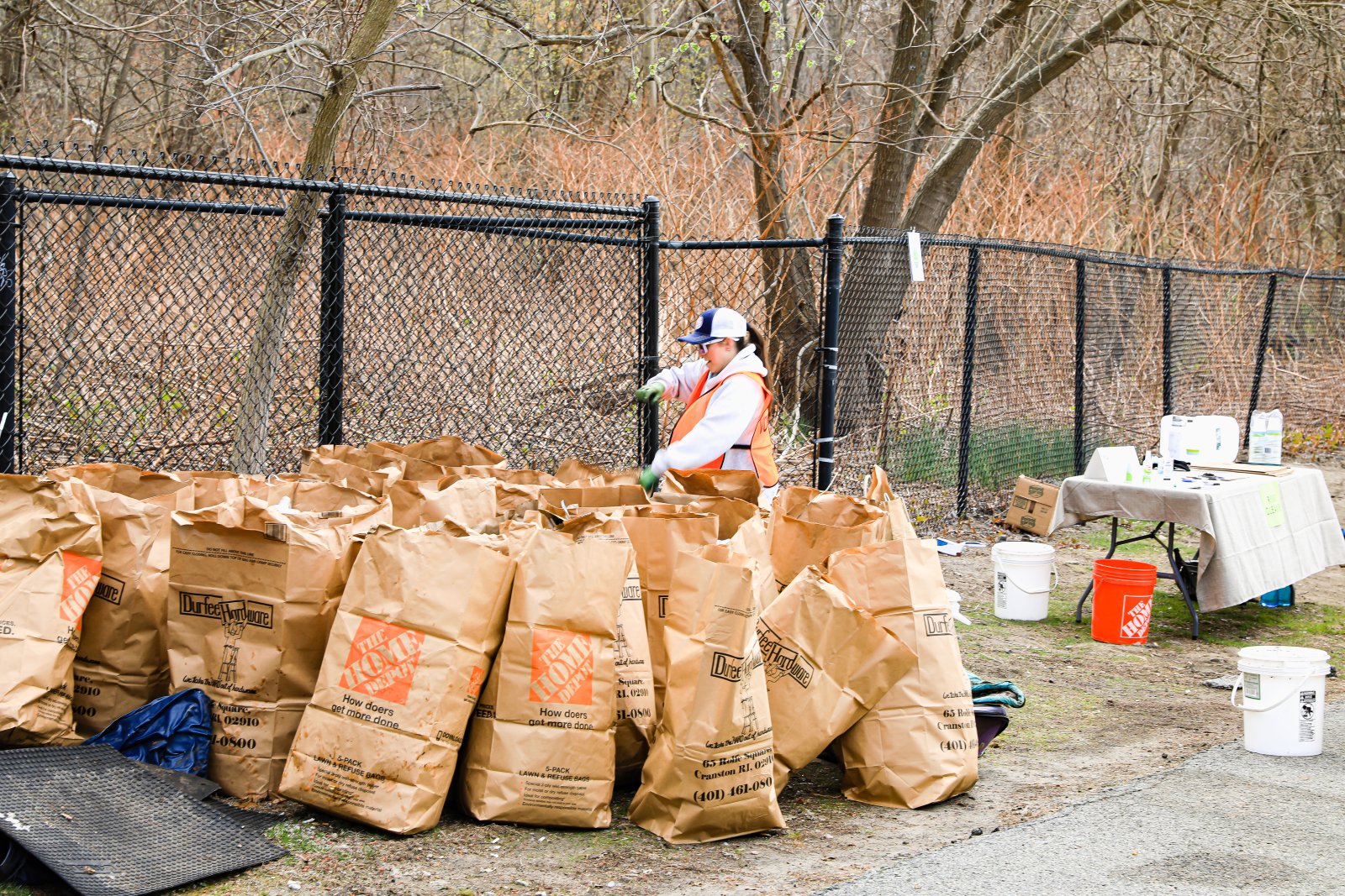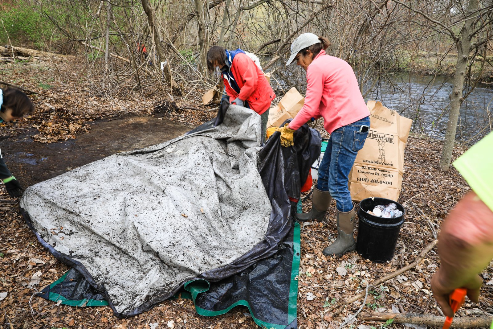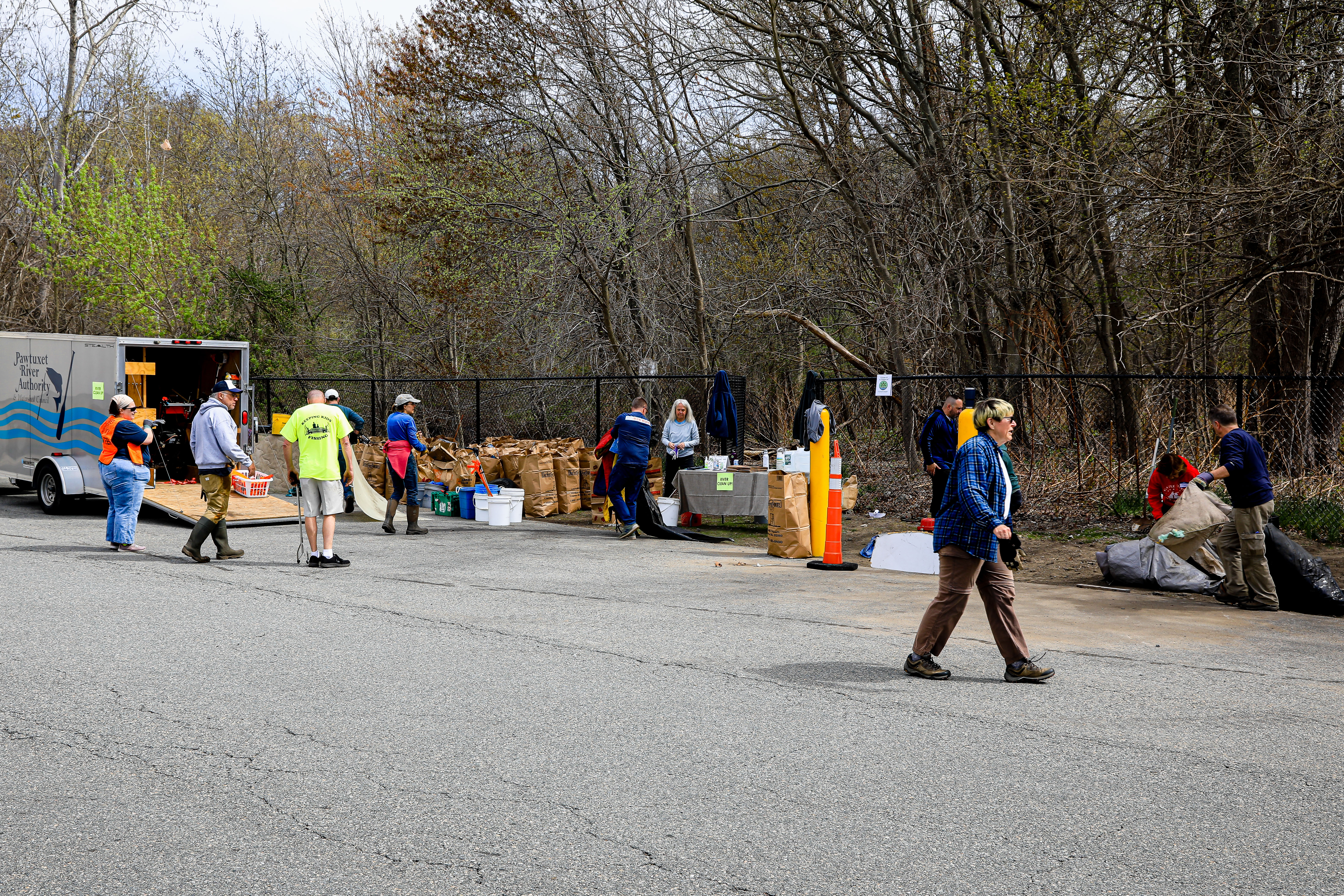 On Saturday, April 15th the Pawtuxet Green Revival (PGR) and the Friends of the Pawtuxet held a river clean-up event surrounding the area abutting Shaw’s Supermarket and the Pawtuxet River. Discarded mattresses, a couch, and syringes were gathered and disposed of as well as an enormous amount of plastic containers, and paper. Old shopping carriages were removed from the river as well. When it was over the “crew”, made up of local men, women, and children, completely filled a huge industrial size dumpster, pitcher enclosed. When traveling by Shaw’s Market, take notice of the area free of debris.