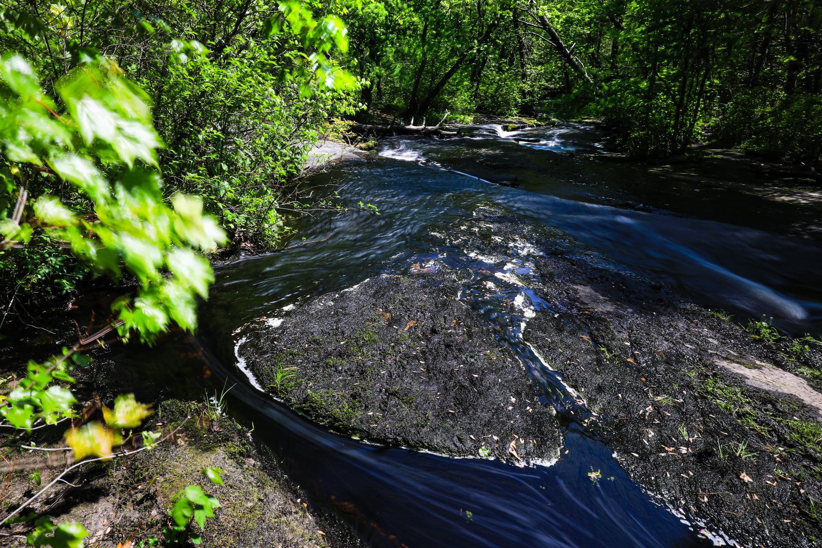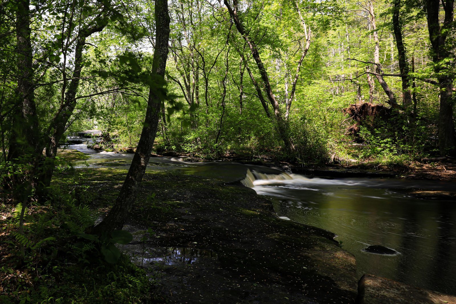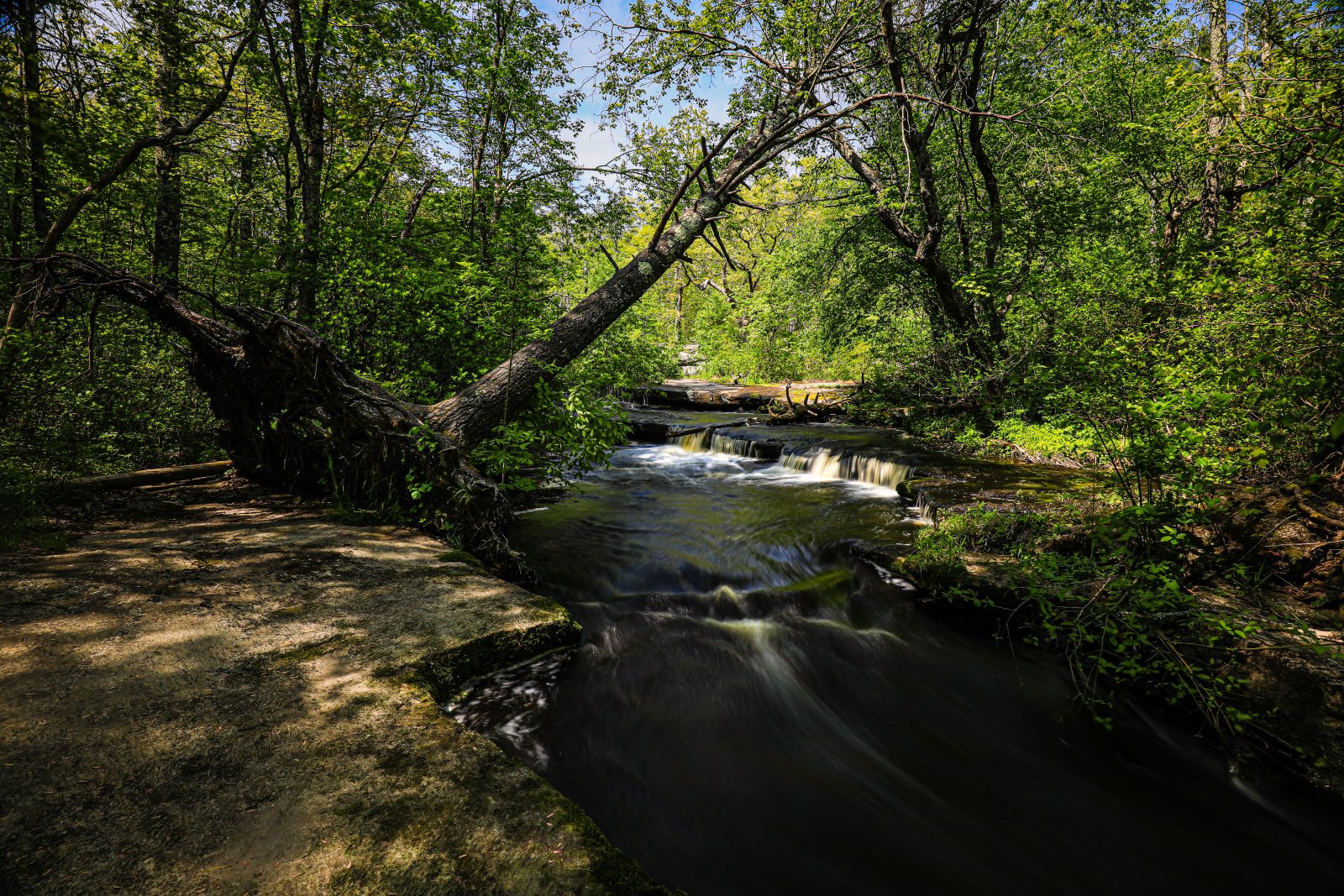 Yesterday Cemal and I went to Step Stone Falls one of our favorite places to photograph. We were thinking since the spring had some good bouts of rain the water level at Step Stone would be fantastic. Well that did not disappoint as there was plenty of water and water movement. Beautiful sunny day with hazy blue sky. After a few hours we both were tired. We forgot how downhill, not steep, rather consistent it is as we traverse the falls themselves. We are looking forward to returning in the fall for the colors and reflections.