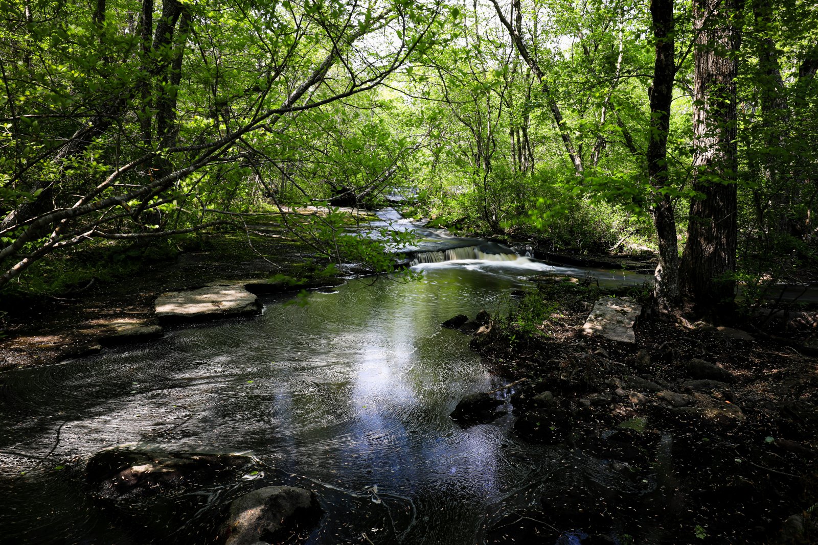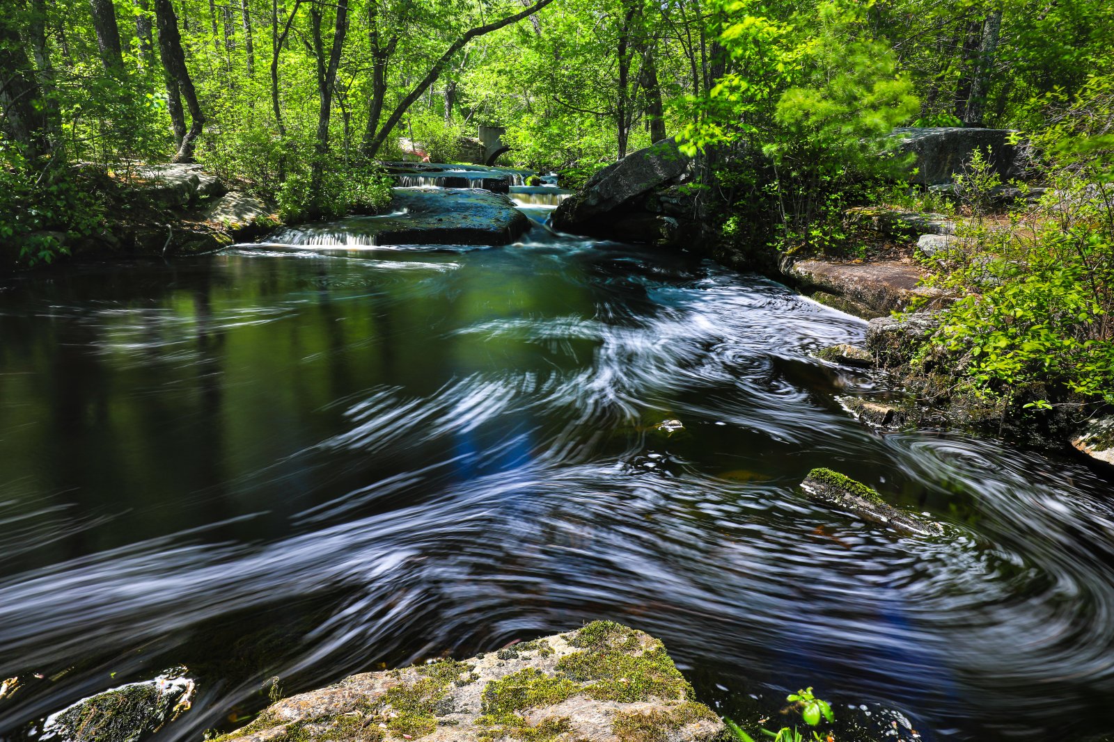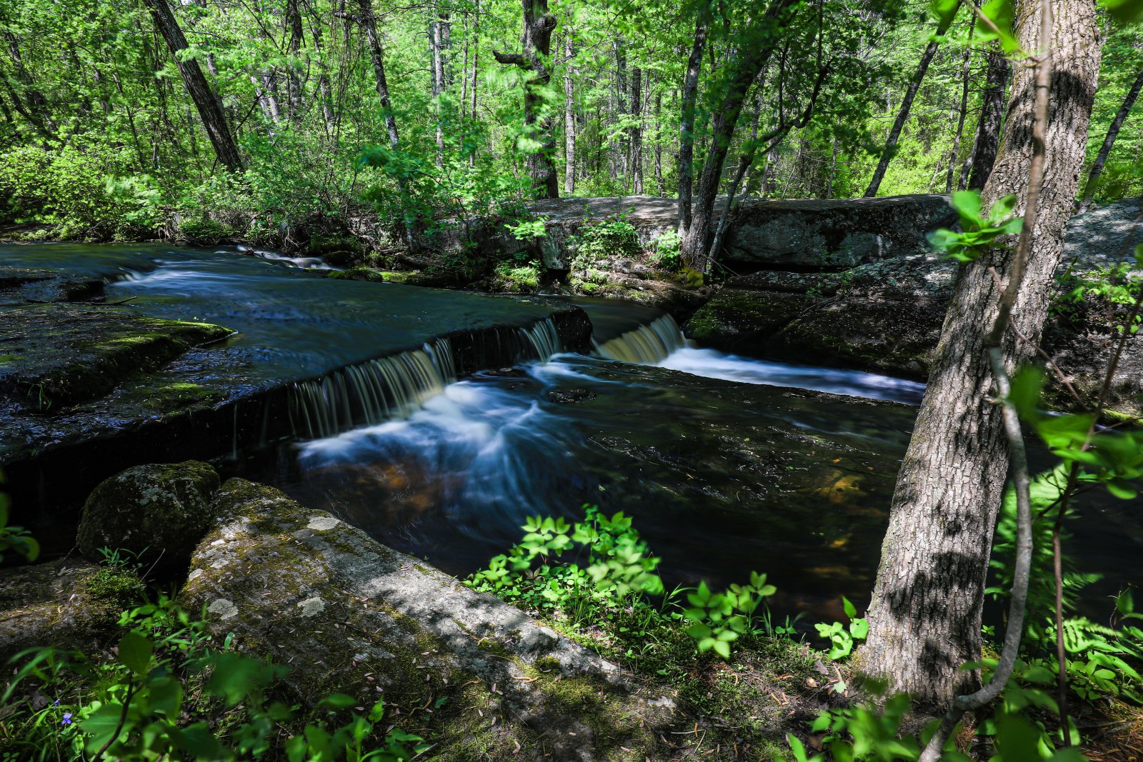 Yesterday Cemal and I went to Step Stone Falls one of our favorite places to photograph. We were thinking since the spring had some good bouts of rain the water level at Step Stone would be fantastic. Well that did not disappoint as there was plenty of water and water movement. Beautiful sunny day with hazy blue sky. After a few hours we both were tired. We forgot how downhill, not steep, rather consistent it is as we traverse the falls themselves. We are looking forward to returning in the fall for the colors and reflections.